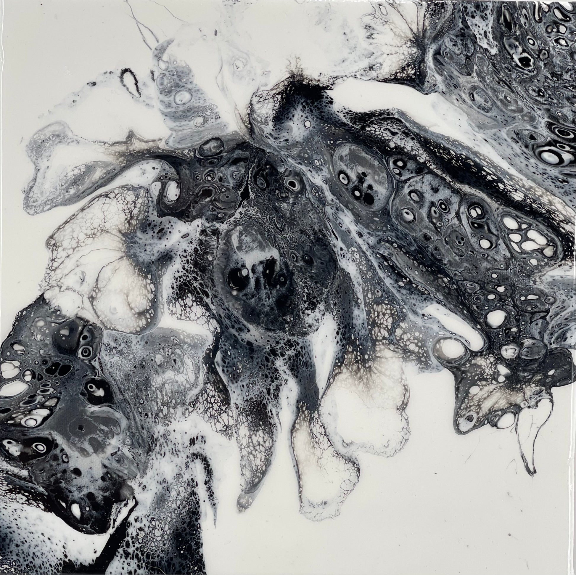 Come face to face with an abstract bee in this 12x12 painting