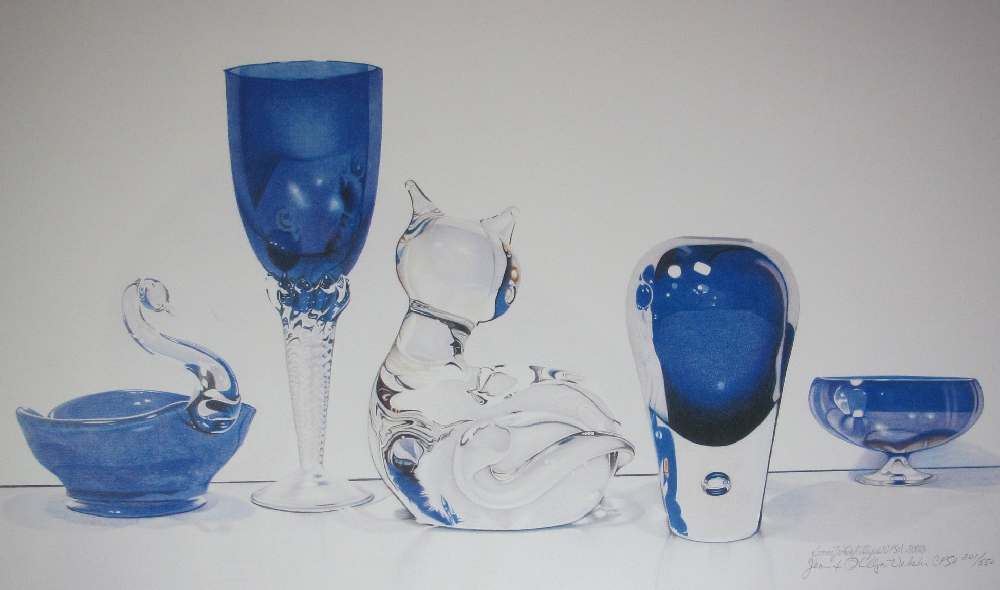 "I did this piece to grieve the loss of my mom. She collected cobalt blue glass and these particular pieces have special memories attached to them. I just wanted to be alone with those items and my memories of her...never thought the drawing would mean anything to anyone but me. The original was accepted into the International Colored Pencil Exhibition and brought home my first award at the International level. It went on to be featured in The Artist's Magazine. Mom would be proud.." --Jennifer Carpenter
