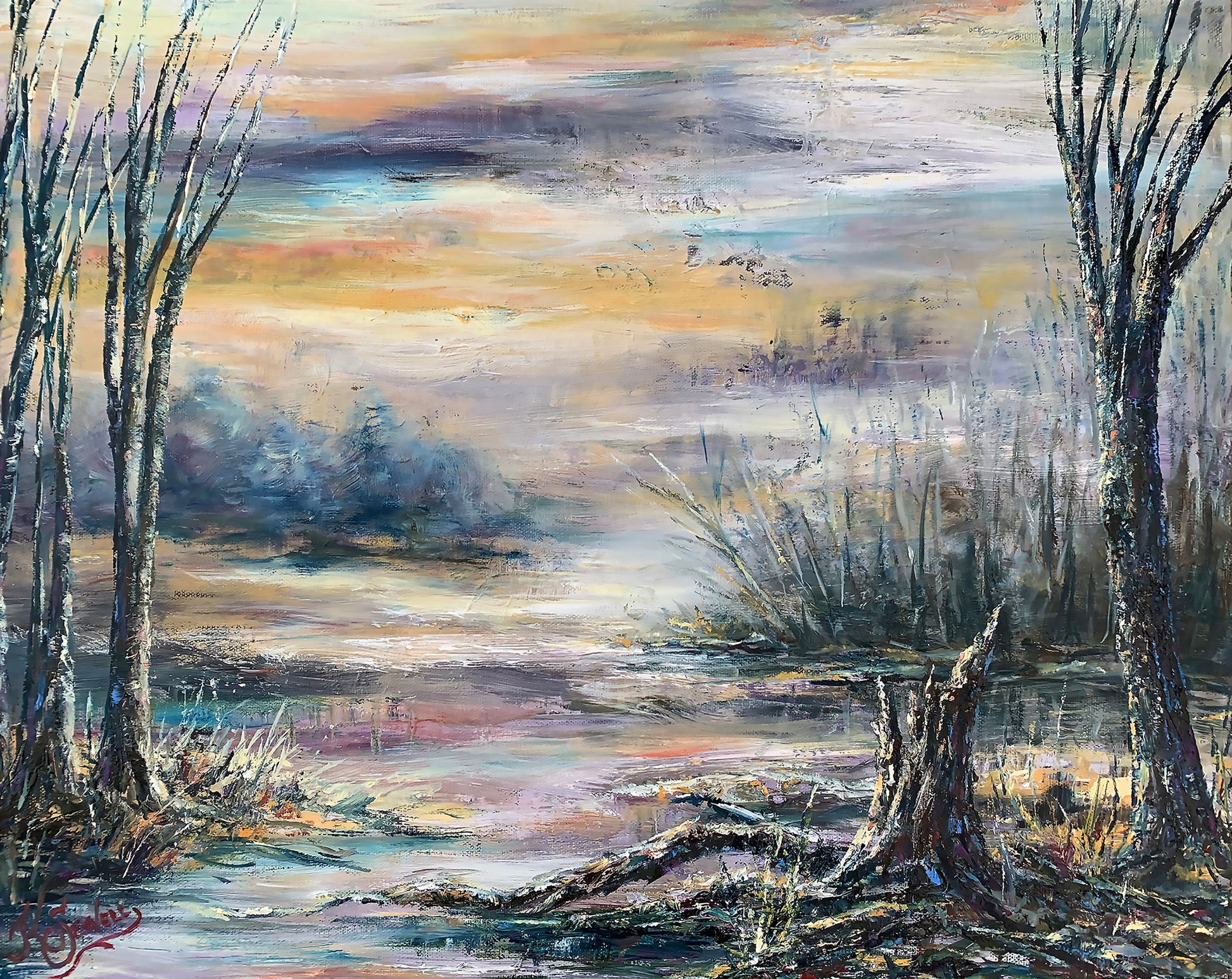 Sometimes to follow your instincts is a risky thing, but with this painting I feel it was the best course to take. I like my final version much better than my initial painting. The feel of unpredicted weather unfolding was in the air.