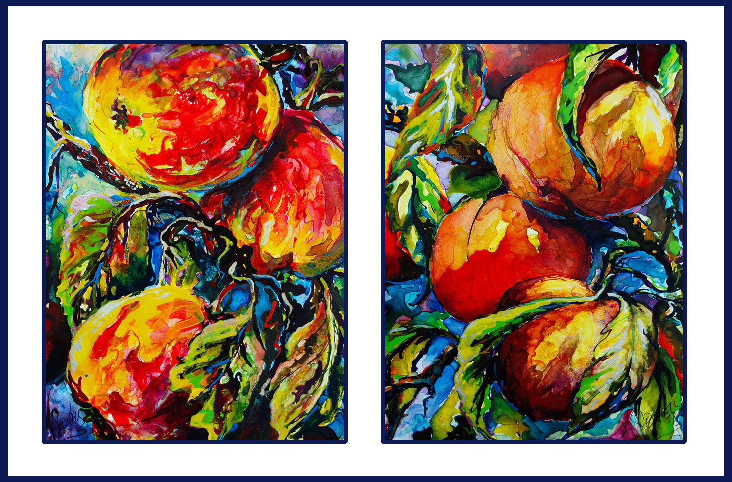 "In Season, Diptych" by J K (Karen) Phillips Sewell, Acrylic Inks