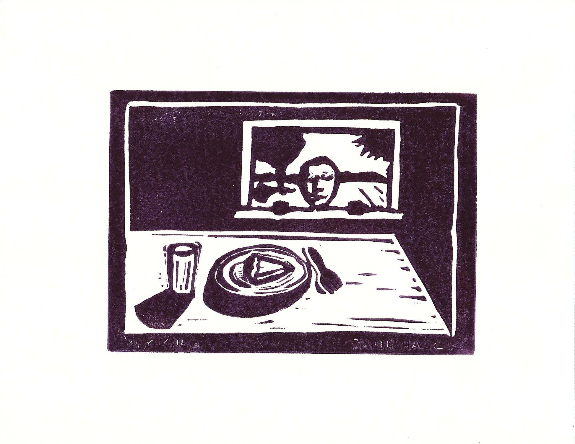 "Looking for Pie" by David Hall - Block Print