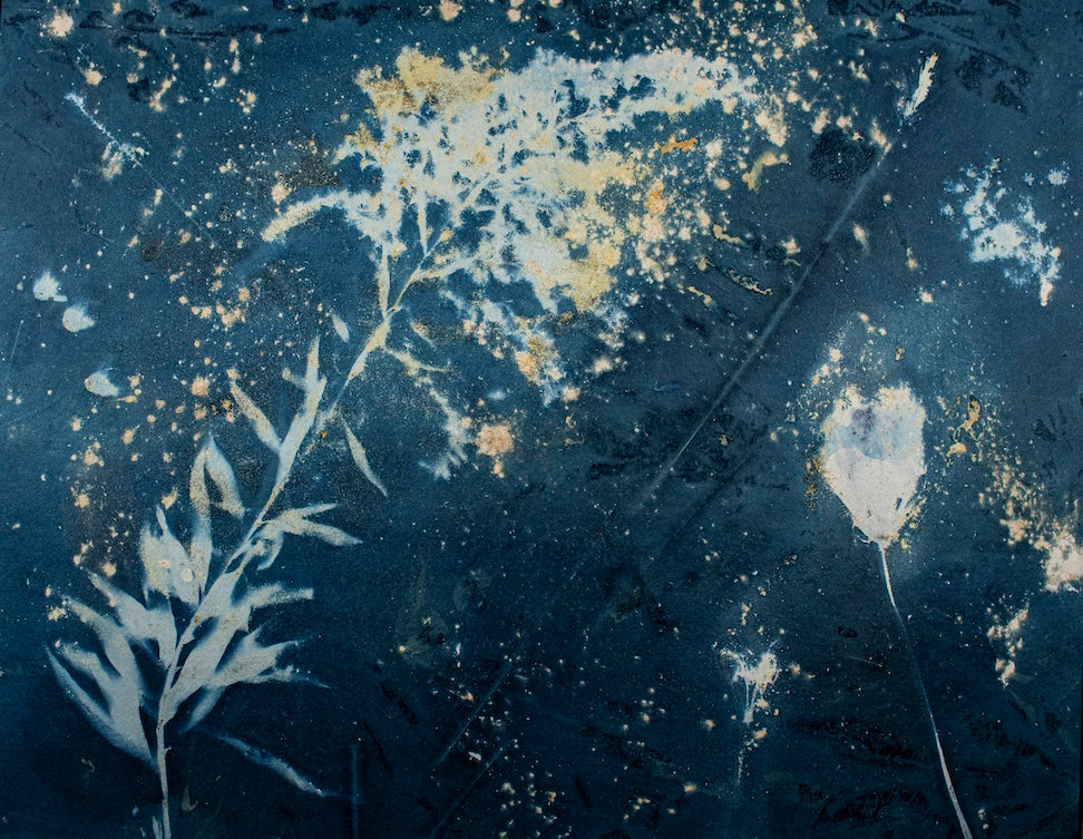 10-1/2x13-1/2" wet cyanotype matted and framed to 19x22"
