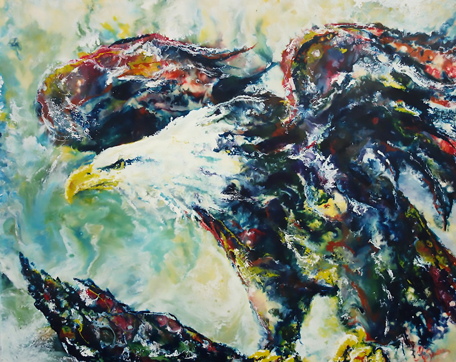 Birds of prey have always been an interest of mine. Eagles are especially regal and lethal as well. This was originally painted in Encaustics (Beeswax).