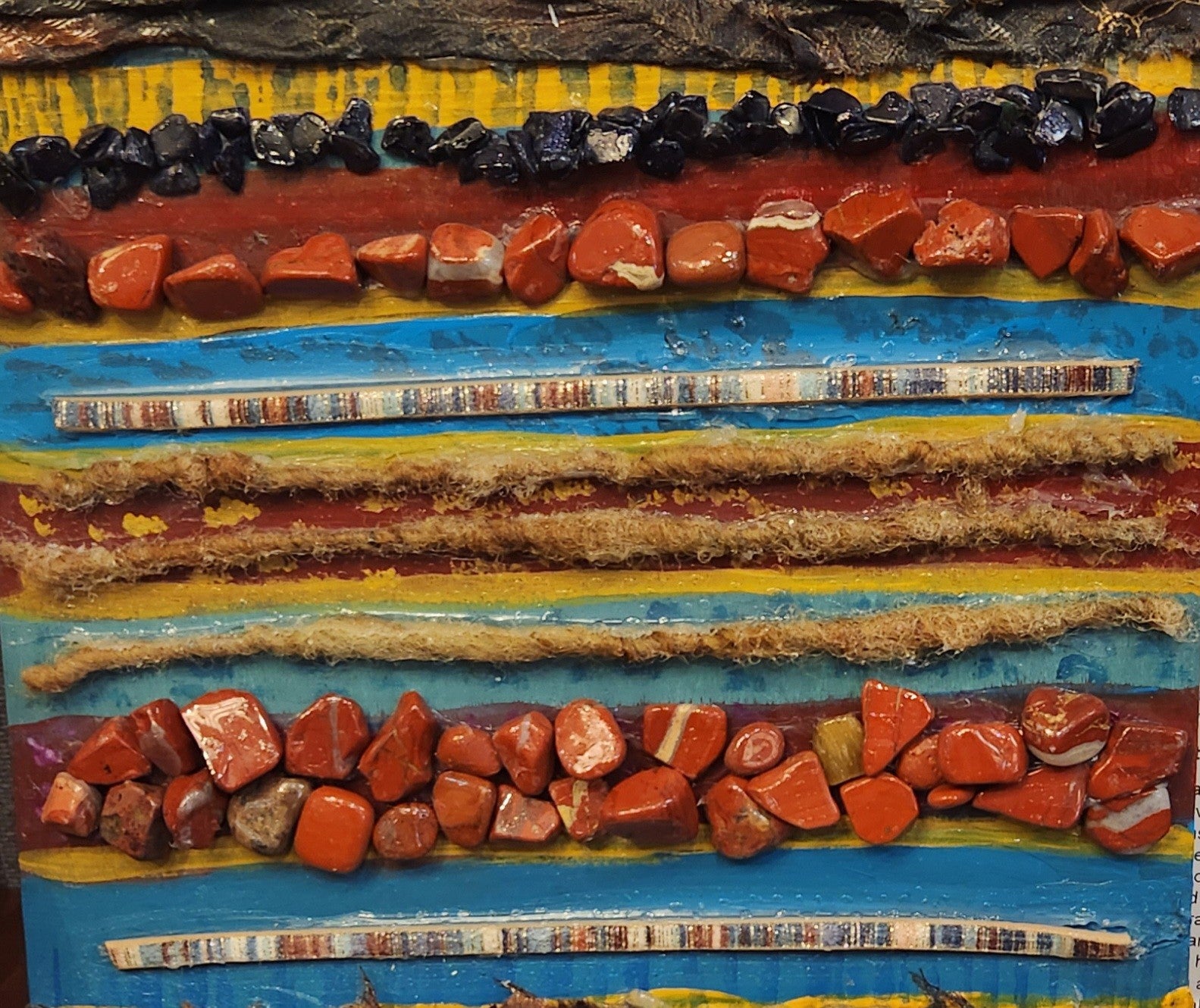 8x8 wooden Panel with acrylic, organic materials, gemstones
