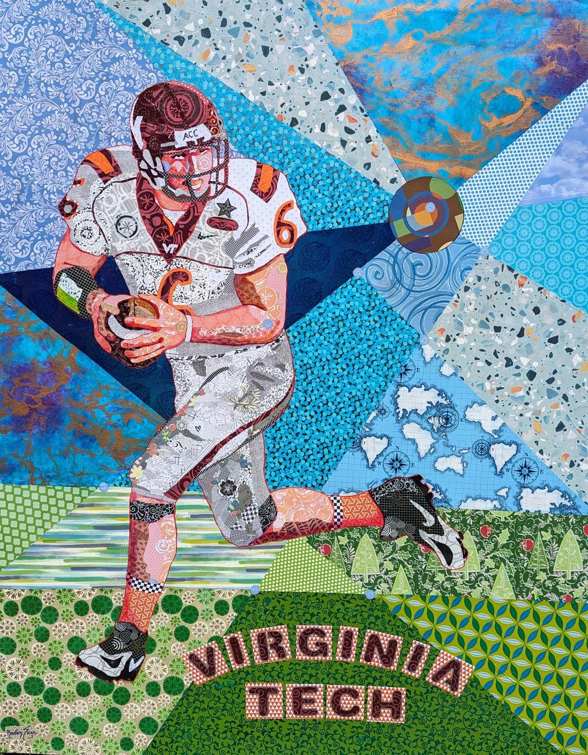 11" x 14" archival reproduction on canvas of a Virgina Tech quarterback in action.